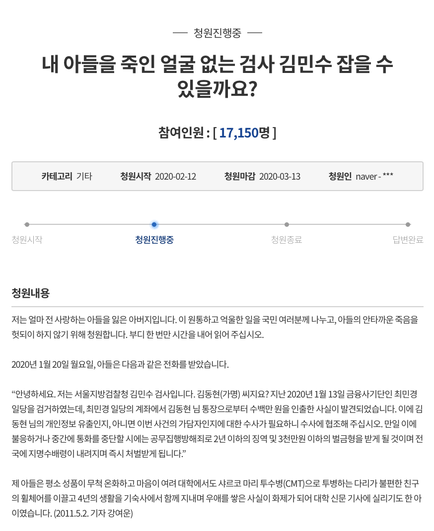 그의 아버지가 올린 청원글을 보고 정말 가슴아팠습니다.